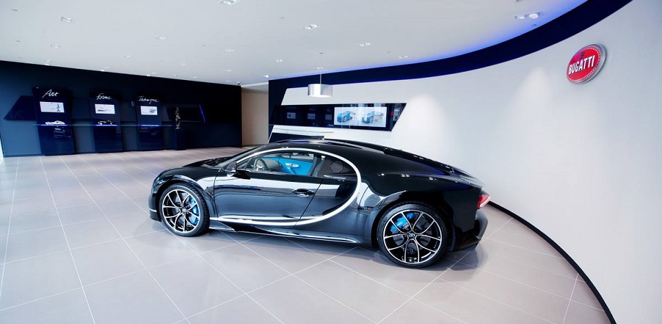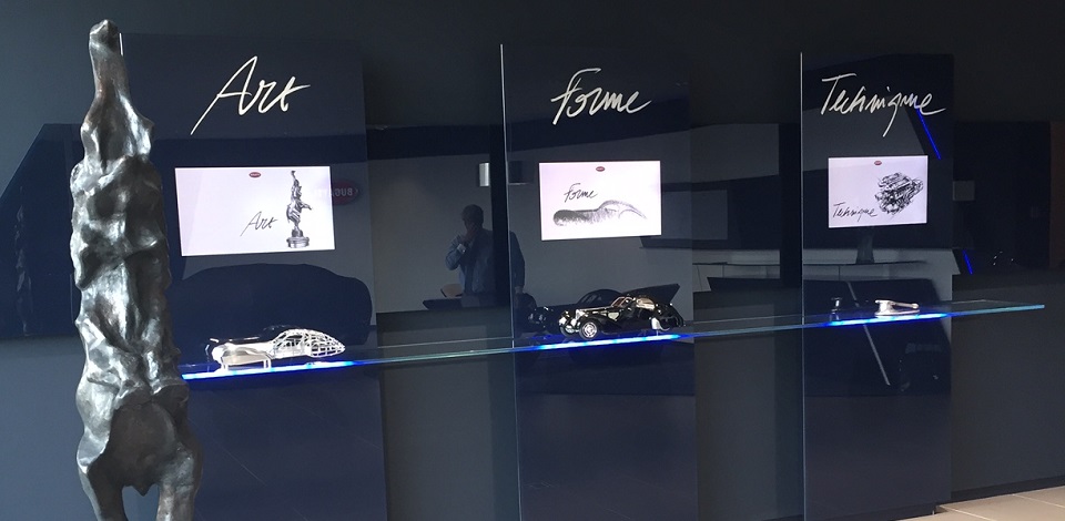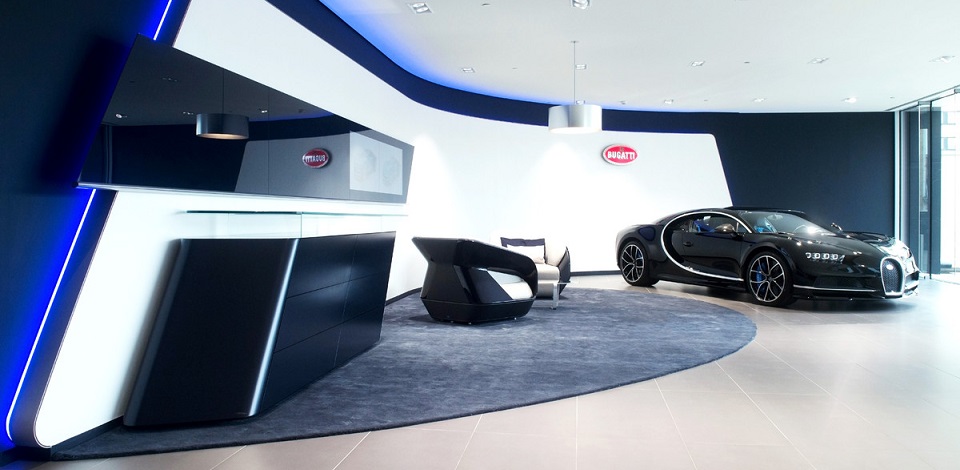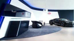 Für den hochmodernen neuen Supersportwagen von Bugatti werden Showrooms auf der ganzen Welt, von Taipeh bis New York, komplett neu installiert. Die Umsetzung des von Braunwagner entworfenen Showroom-Konzeptes sollte stilistisch anspruchsvoll, funktional und perfekt umgesetzt werden.