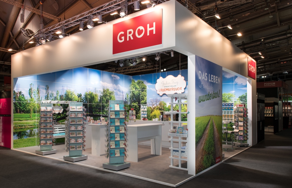 Zu dem vom Groh Verlag erwünschten Messeerfolg hat raumbüro mit einem den Kundenvorstellungen optimal entsprechenden Messedesign beigetragen.