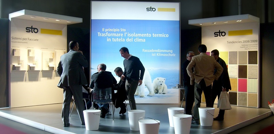 Unser Stammkunde Sto beauftragt uns immer wieder, die Planung der Messestände ihrer Tochtergesellschaften im Ausland zu übernehmen. Den Auf- und Abbau der Stände begleiten wir ebenfalls.